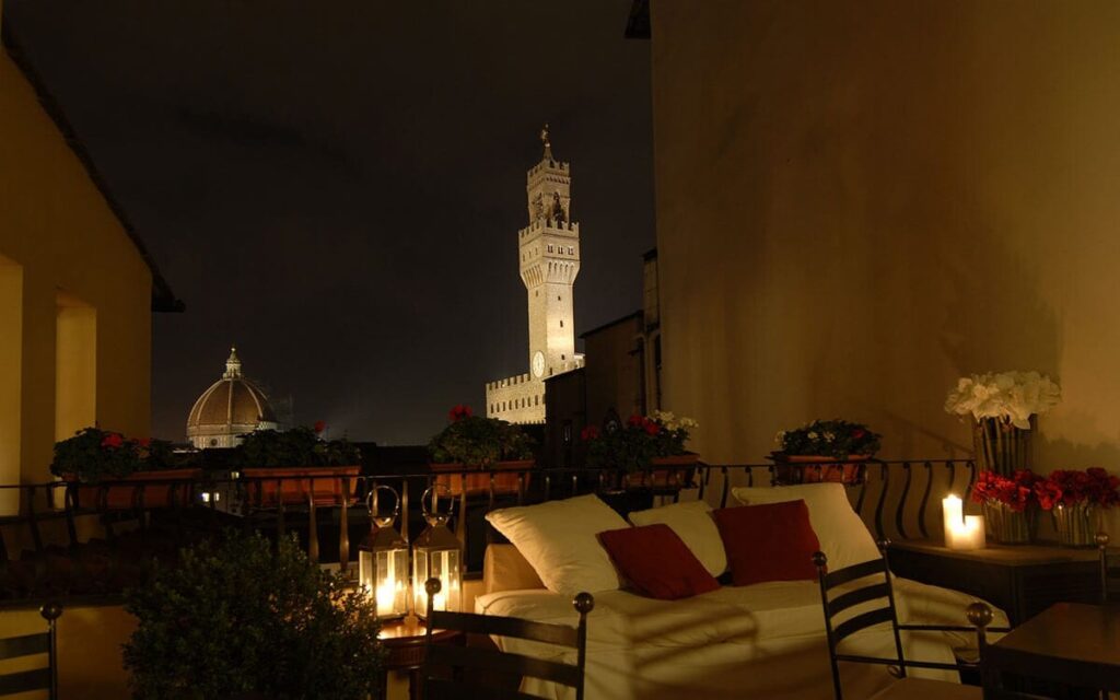 Situated on the sixth floor of the Hotel Machiavelli, the terrace offers an incredible panoramic view of Florence. Imagine sitting at a table, sipping a cocktail with the entire Florence skyline as your backdrop. The Rooftop Machiavelli is also an exclusive venue perfect for celebrating events such as birthdays, graduation parties, and corporate gatherings.